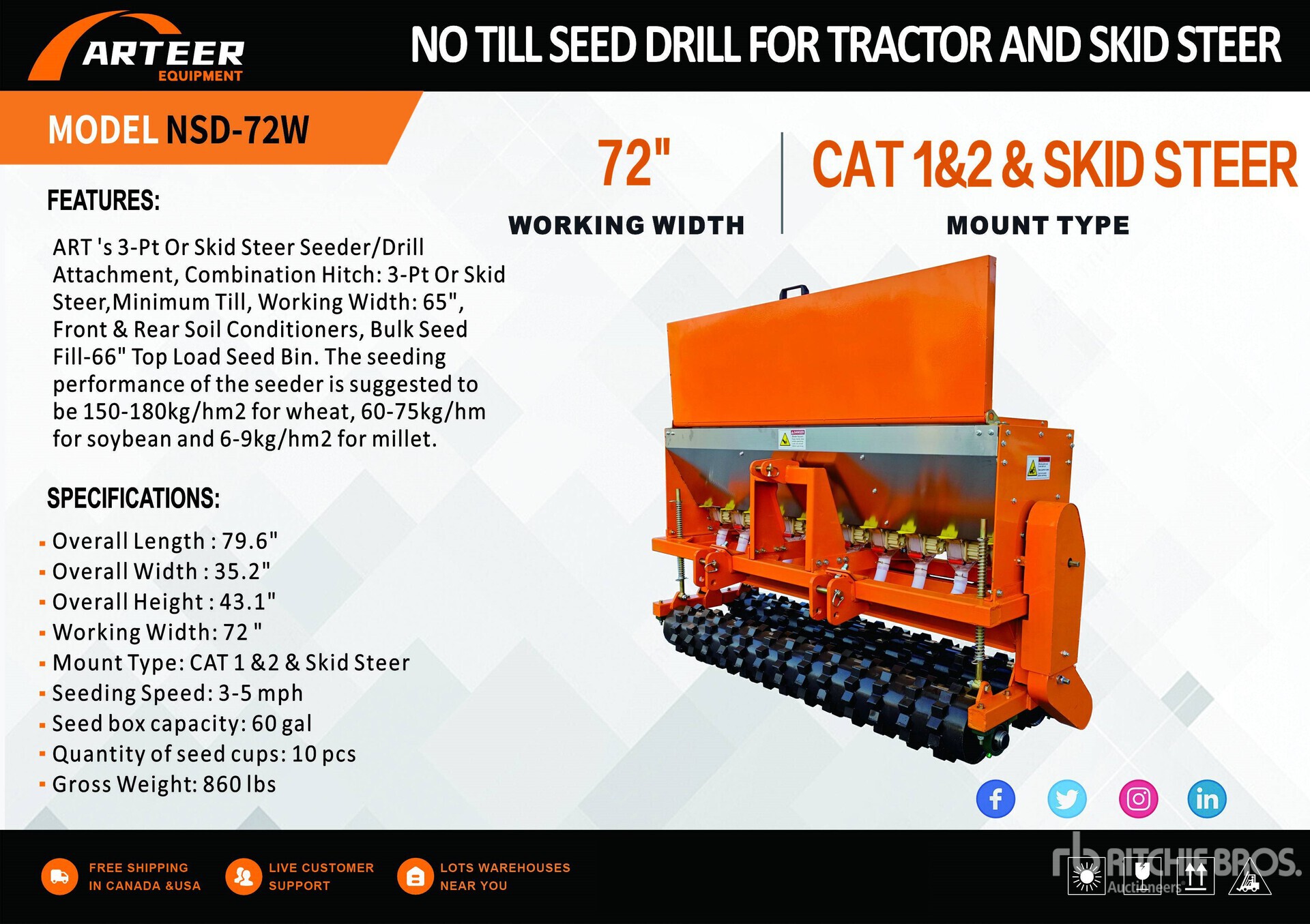 2025 ARTEER NSD-72W 72 in 3-Point & スキッドステア シーダー (Unused)