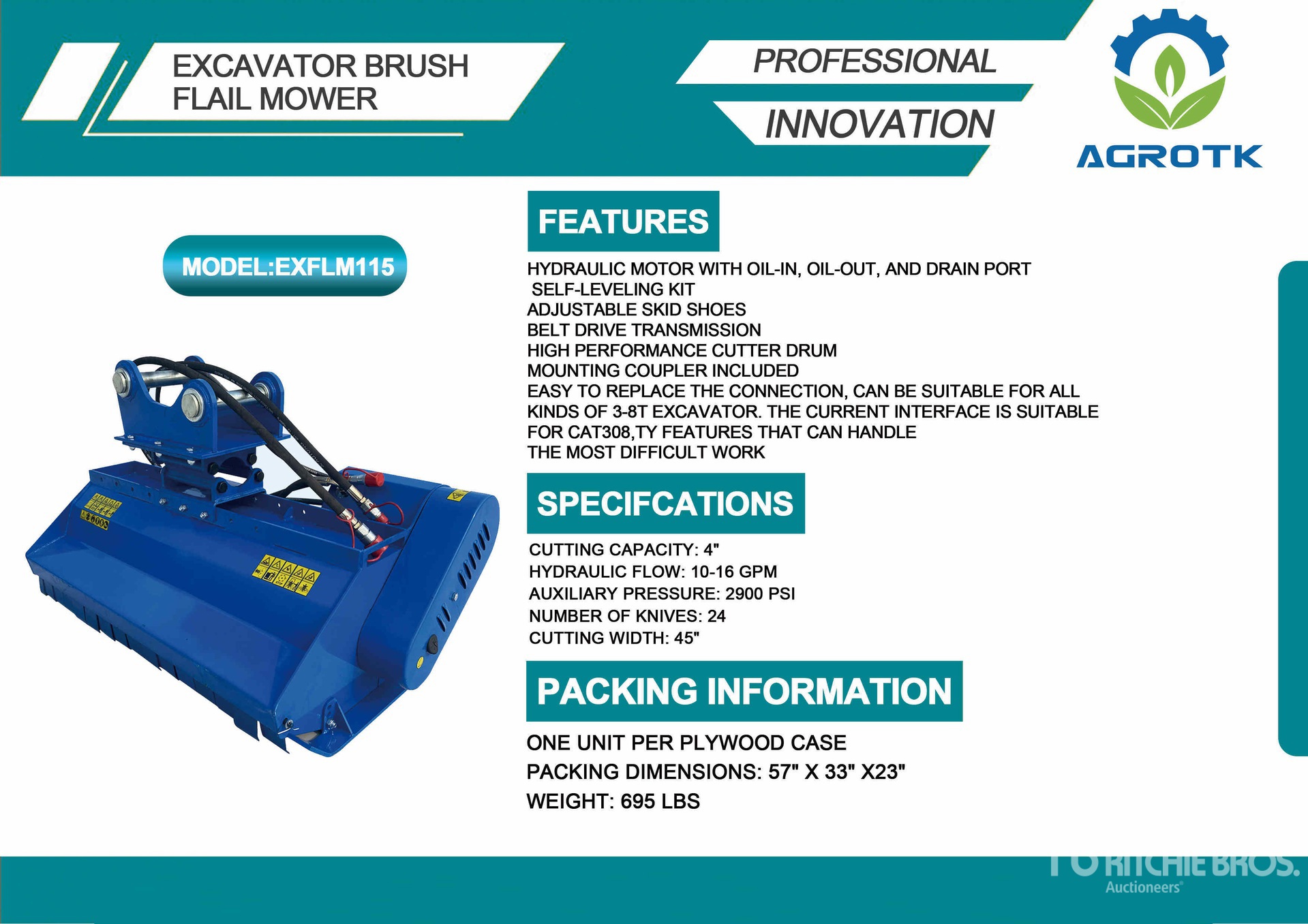 機械の詳細情報は範囲に制限があり、Ritchie Bros. Auctioneersは、ここに明記するもの以外の設備やコンポーメントの検査は行っていません。特に明記されていない限り、明示的または黙示的かにかかわらず、Ritchie Bros.は機械やそのコンポーネントに関する一切の責任を負わないものとします。機能性、快適性、あるいは関係官庁や規制機関が定める安全基準や要件に関する準拠性、特定目的への適合性、または商品性に関する表明や保証も含まれますが、これらに限るわけではありません。お客様には入札される前に必ず機械の検品を行うことをお勧めします。
