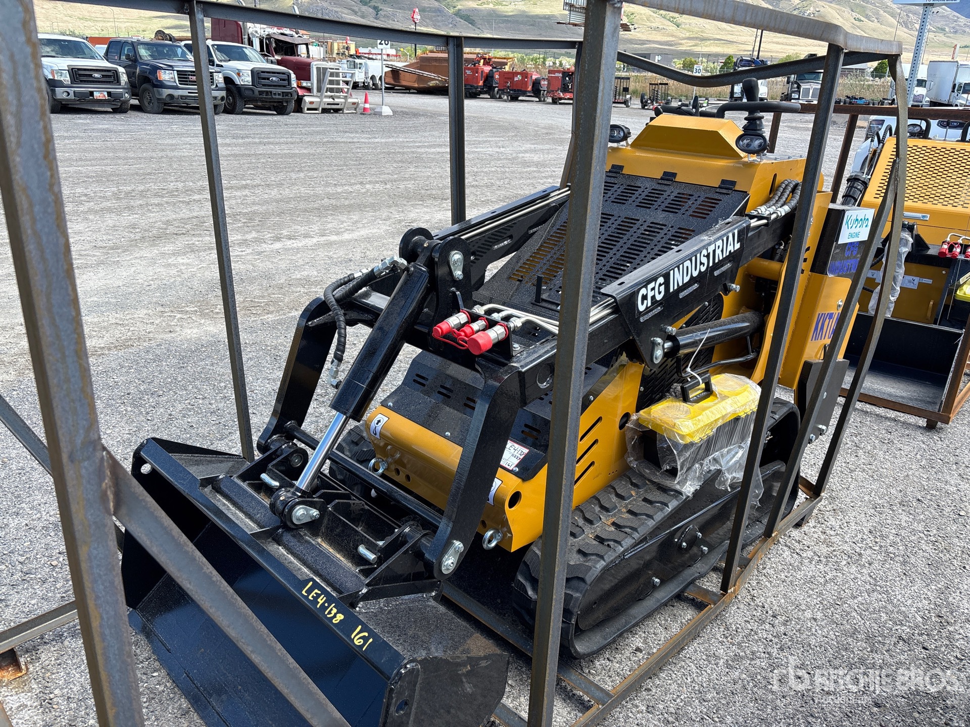 Open Operator Station, 9 in Track Belts, Hydraulic Coupler, 48 in Bucket, Item is new/unused