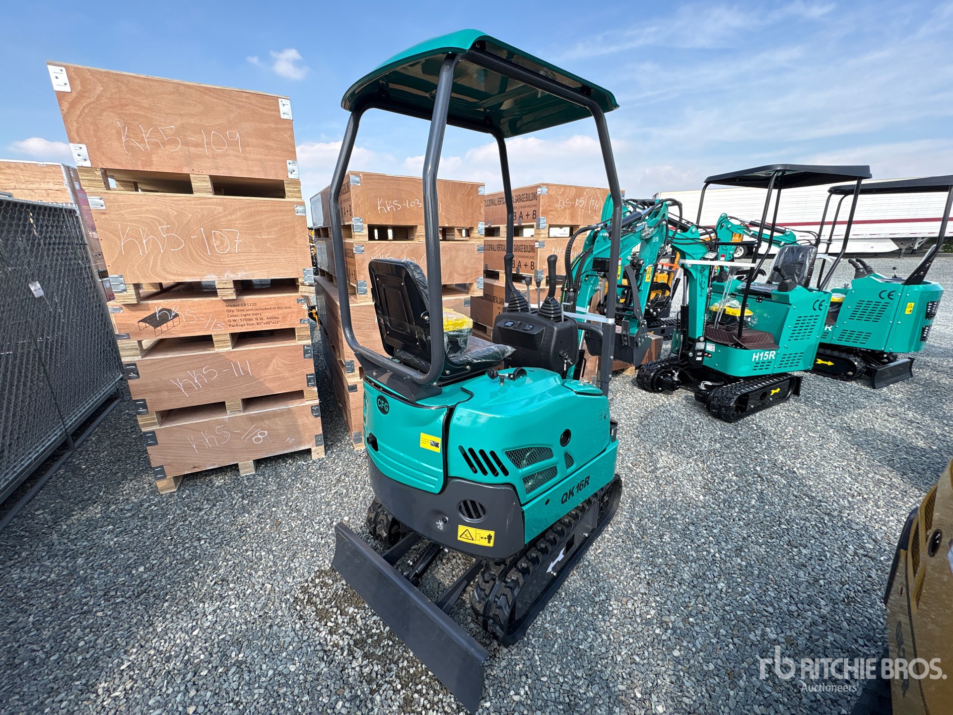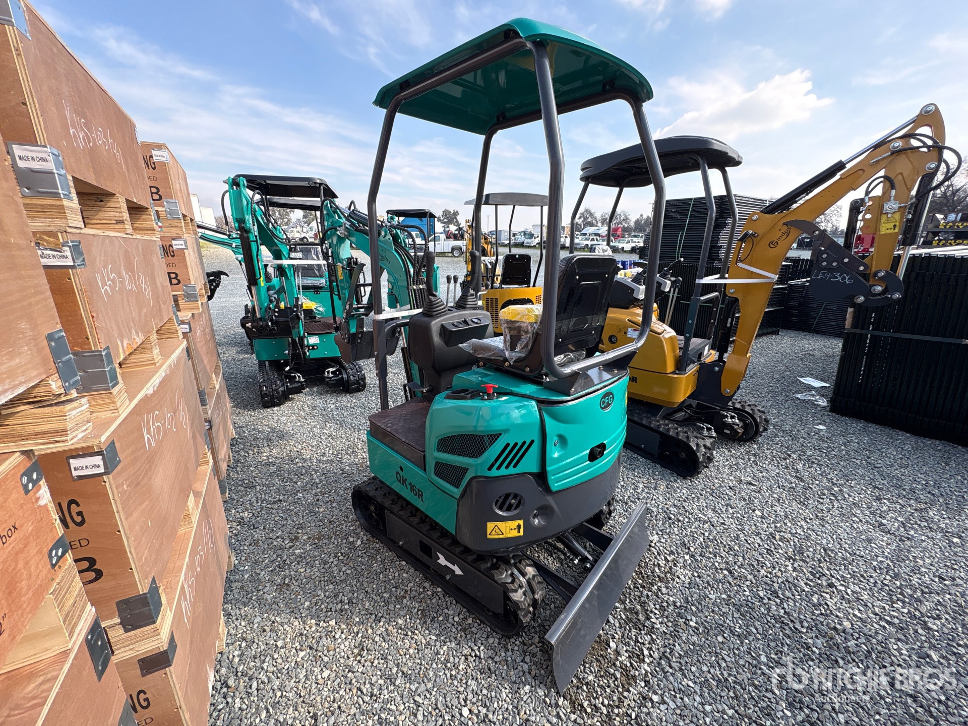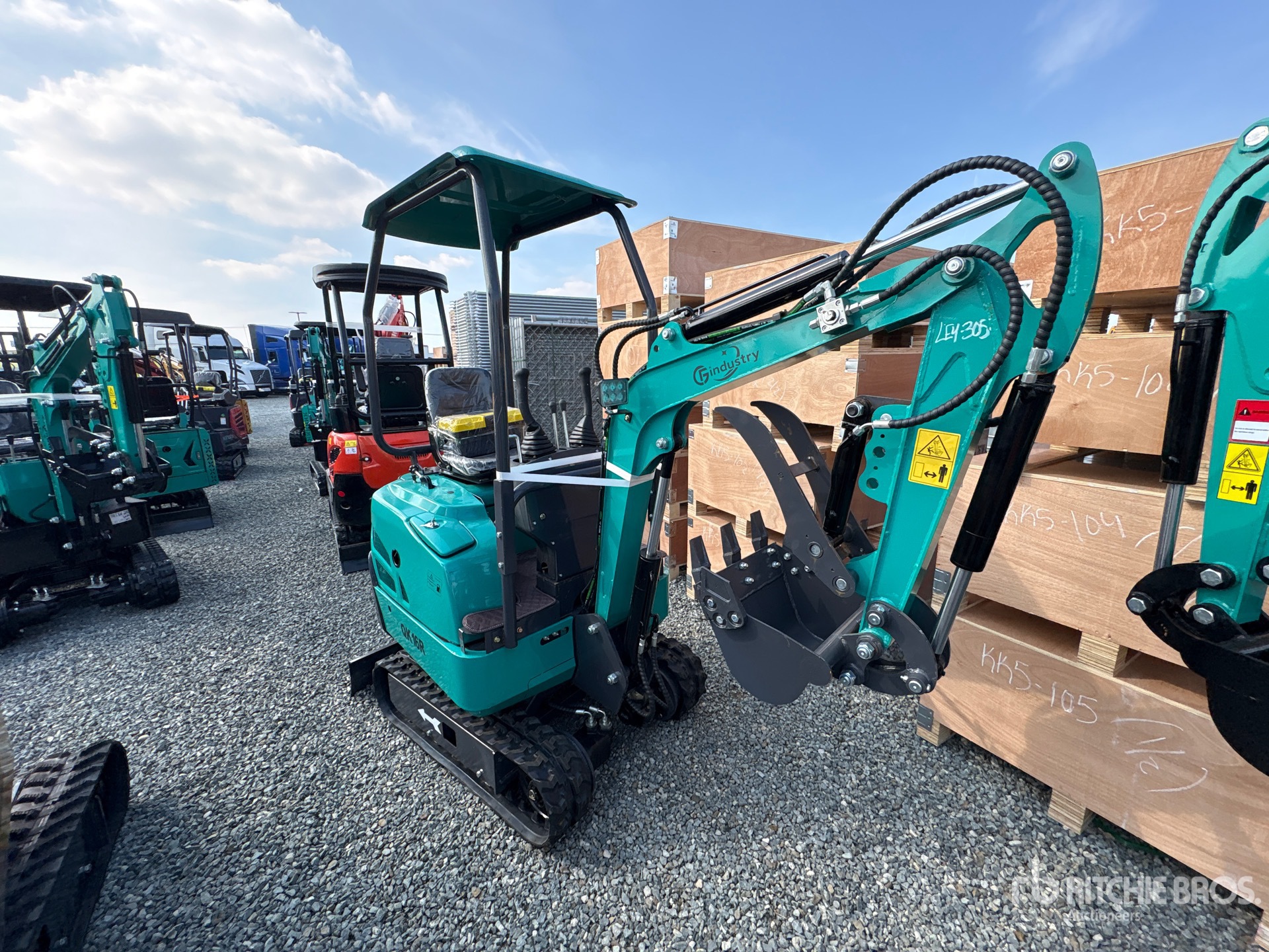 2025 US EPA Label, 2 ft 8 in Stick, Backfill Blade, 7 in Rubber Tracks, Manual Quick Coupler, 16 in Digging Bucket, Hydraulic Thumb