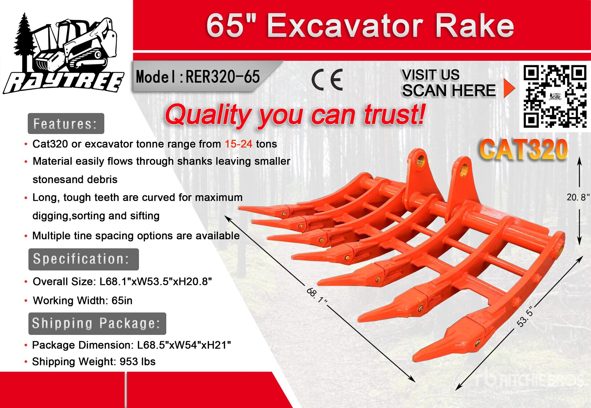2026 Raytree RER320-65 65 in エクスカベーター レーク - Fits Cat 320 / 15 - 24 ton (Unused)