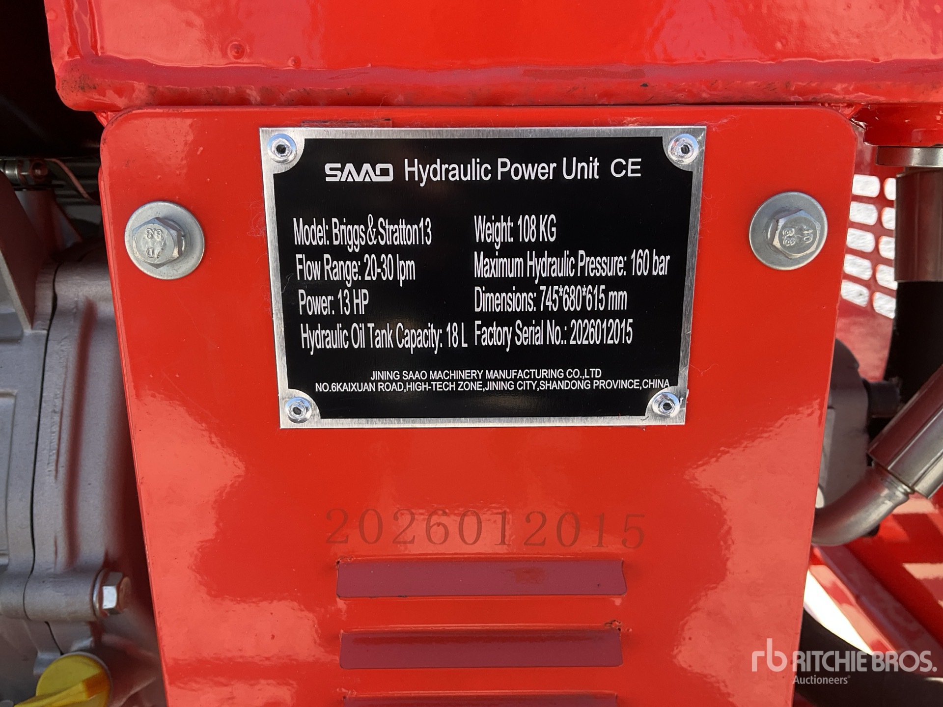 2026 SAAO Briggs&Stratton13 Walk-Behind Unidad de Poder Hidraulico (Sin Usar) / パワーパッケージユニット (Unused)