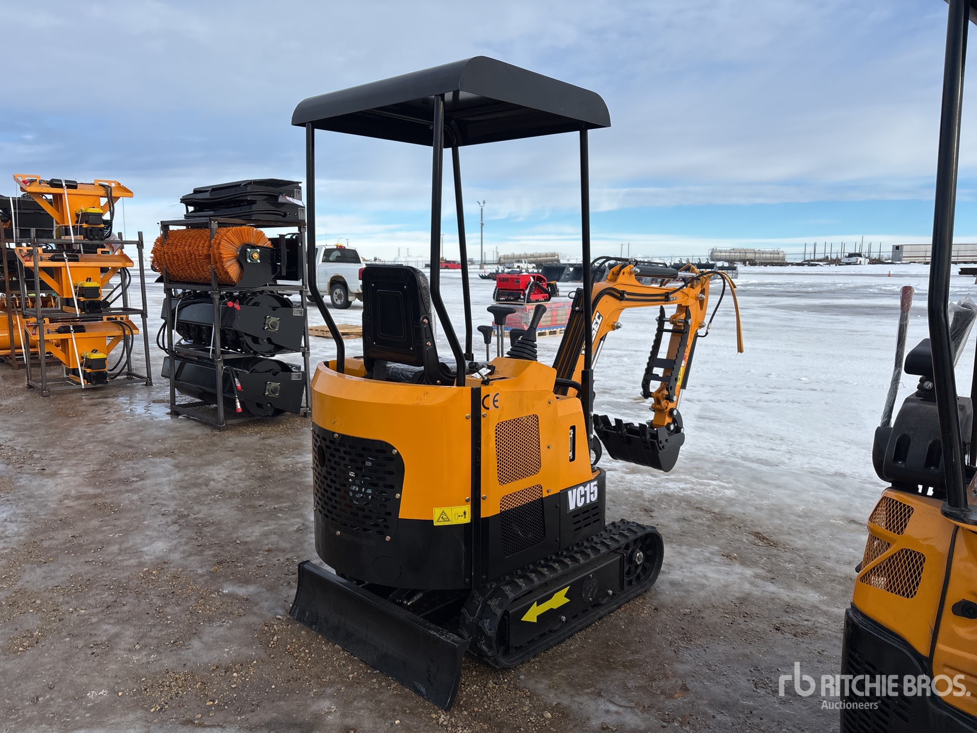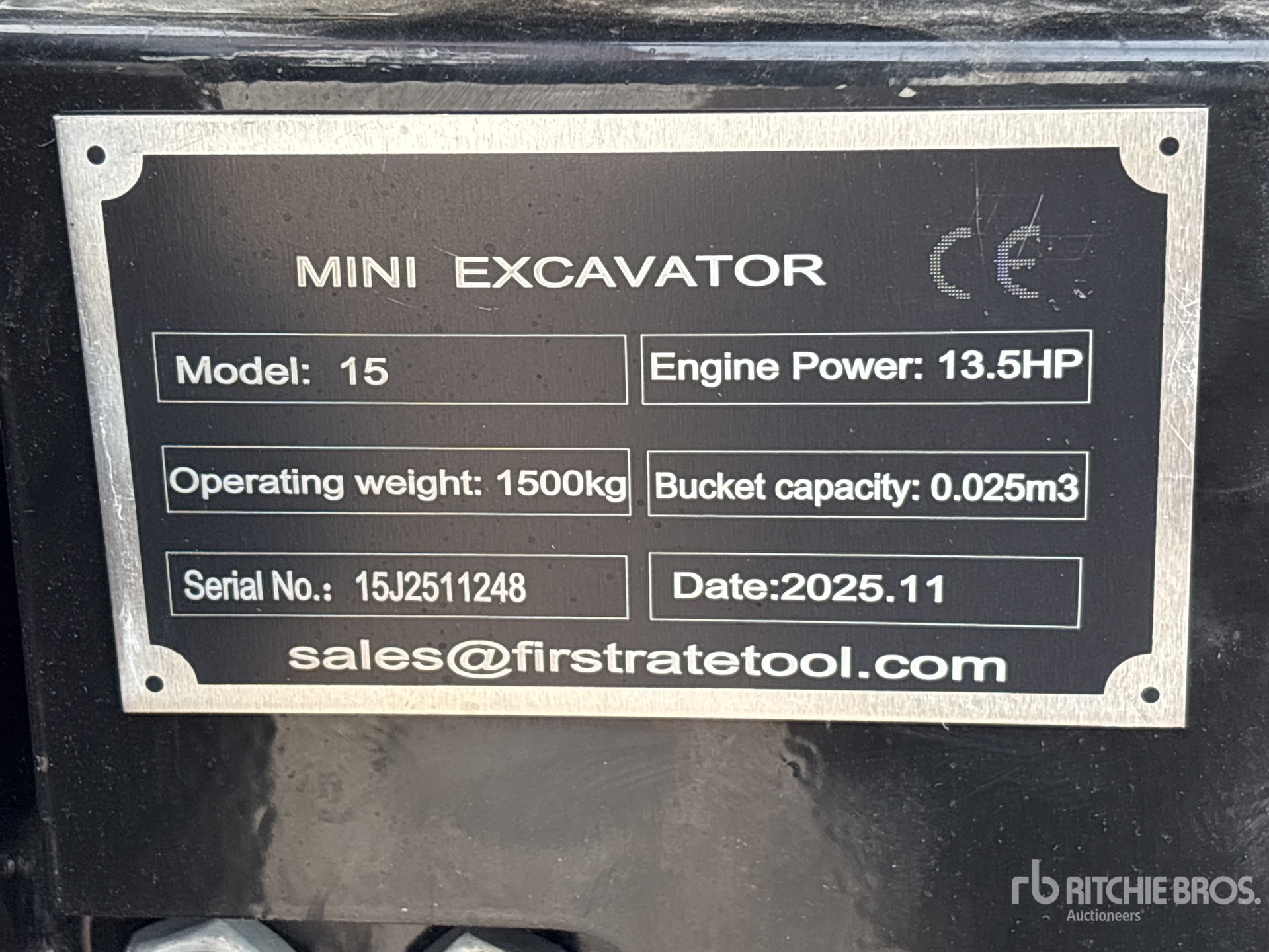 2025 US EPA Label, 2 ft 6 in Stick, Auxiliary Hydraulic Plumbing, Backfill Blade, 7 in Rubber Tracks, Manual Quick Coupler, 16 in Digging Bucket, Manual Thumb
