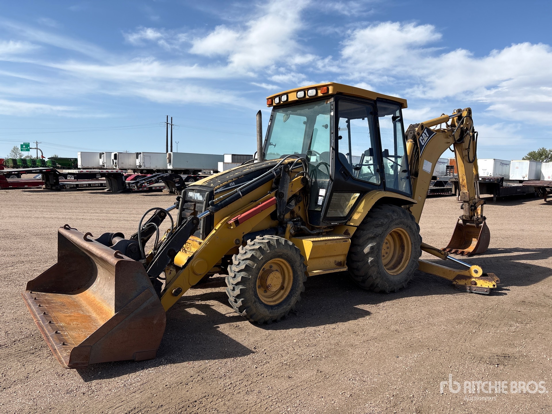 Located in Lane 5 Spot 14, Enclosed Cab, Backhoe Pilot Controls, Hydraulic Coupler, 73 in Loader Bucket, 23 in Backhoe Digging Bucket