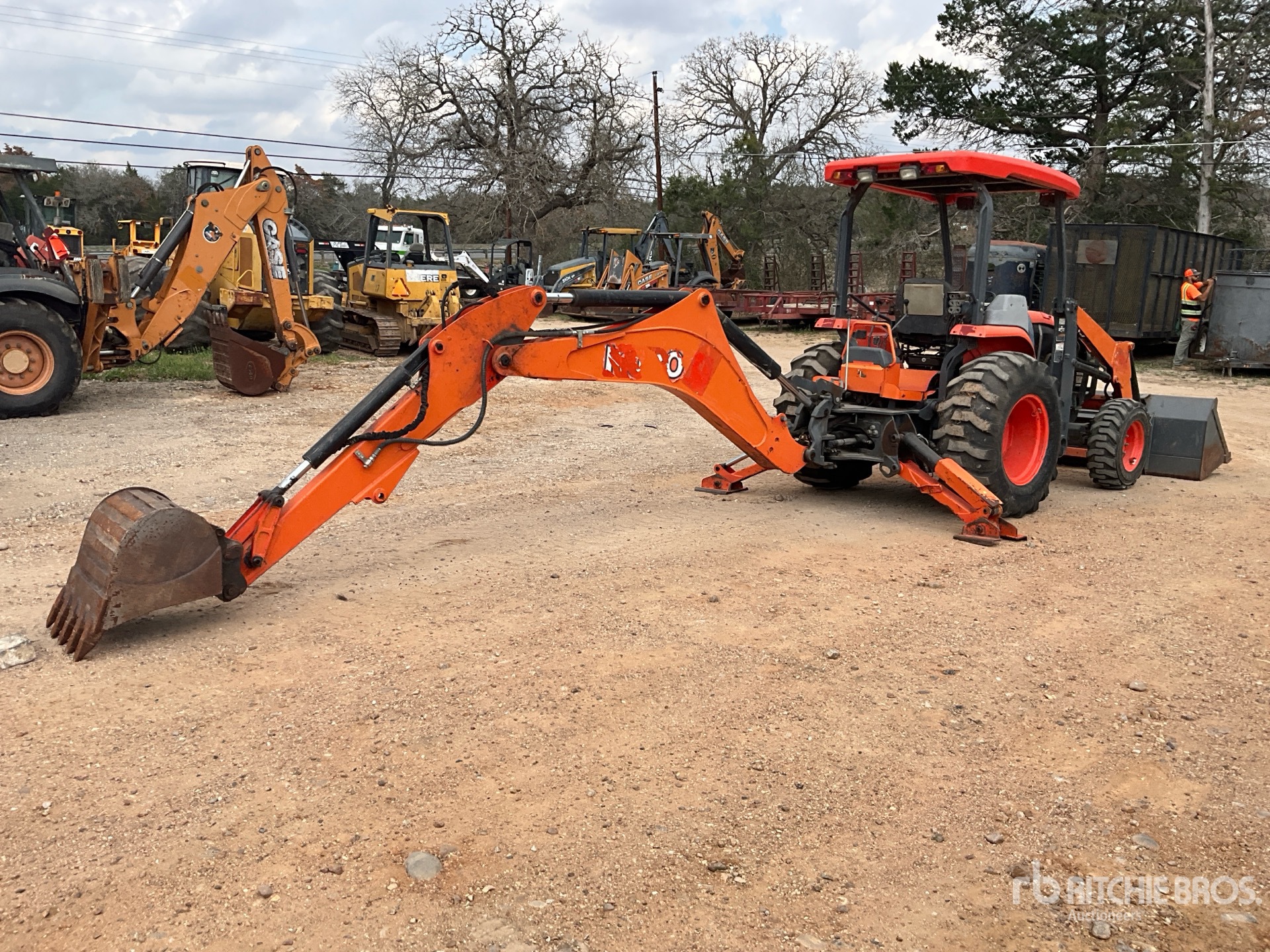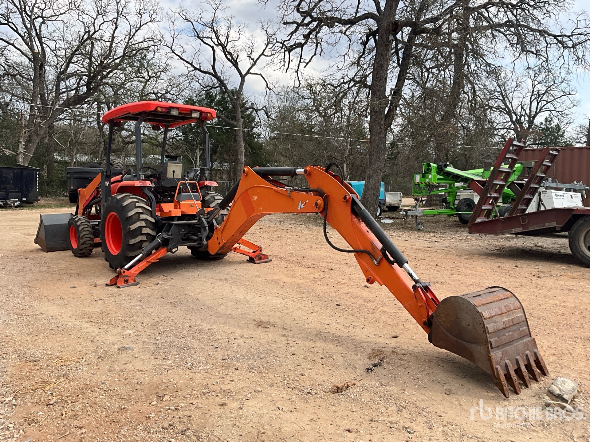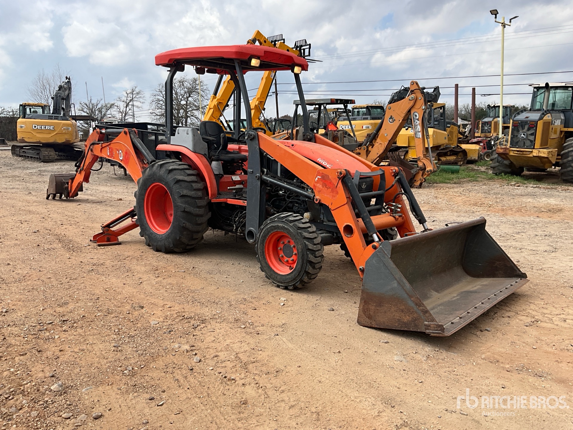 Canopy, Differential Lock, Hydrostatic Drive, Tier 4, 61 hp Engine, 2016 US EPA Label, Kubota Loader, Skid Steer Coupler, 86 in Bucket, 2 Rear Remotes, Kubota Backhoe Attachment With 24 in Bucket, 10-16.5 Front Tires, 17.5L-24 Rear Tires
