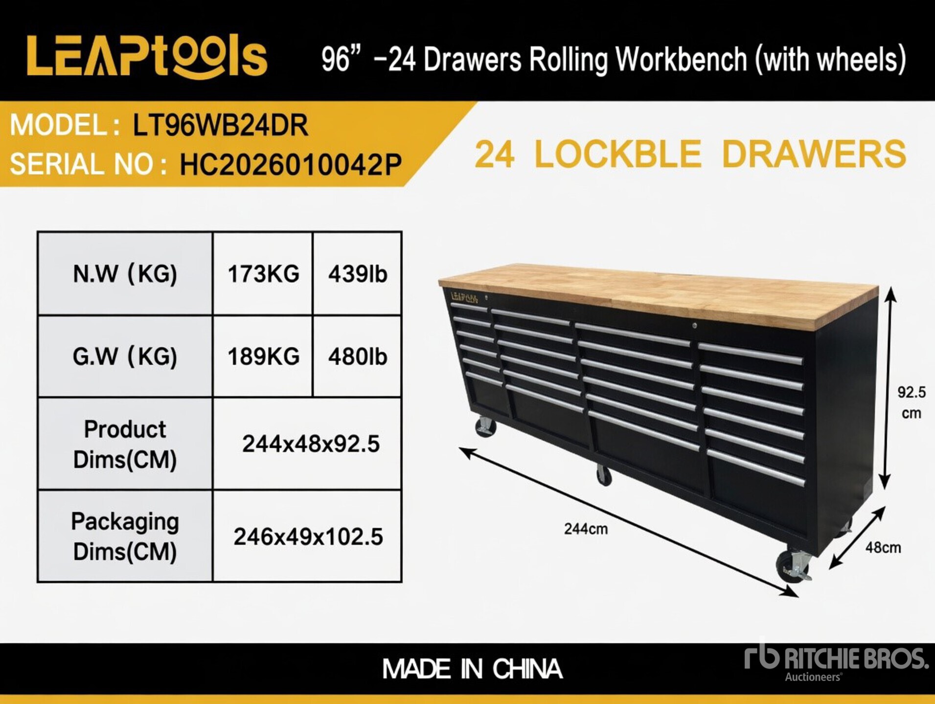2440 mm, 25 Drawers Rolling Workbench (with wheels)
