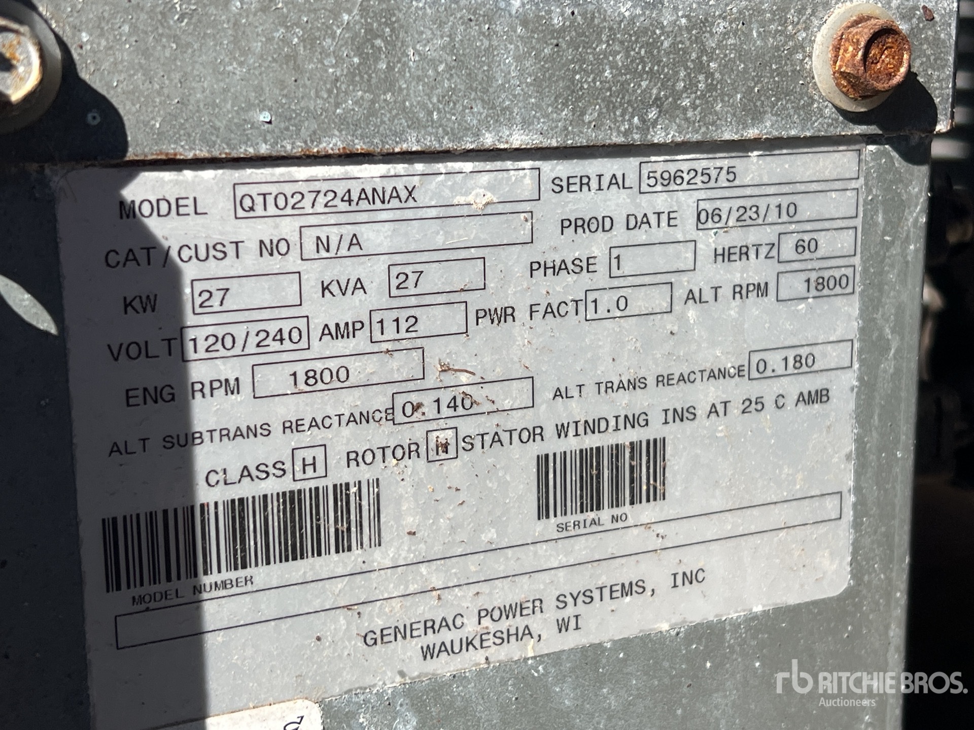 4 Cylinder LPG Engine, /27 kW, Rated Single Phase Output, 120 V / 240 V Rated Voltage