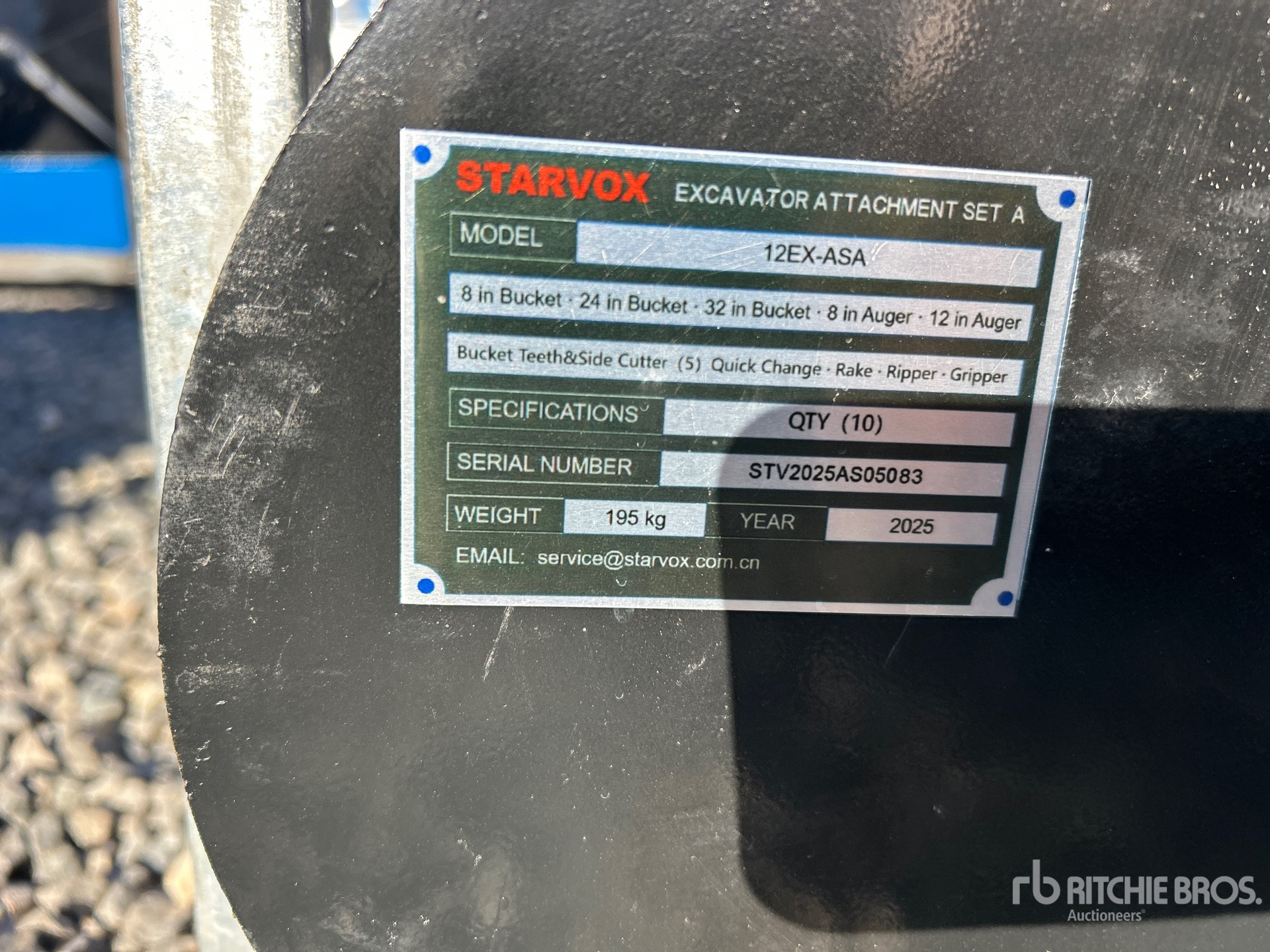 (1) 8 in Bucket, (1) 24 in Bucket, (1) 32 in Bucket, (1) 8 in Auger, (1) 12 in Auger, (1) Quick Coupler, (1) Rake , (1) Ripper, (1) Grapple, (1) Set of Bucket Teeth w/ Side Cutter