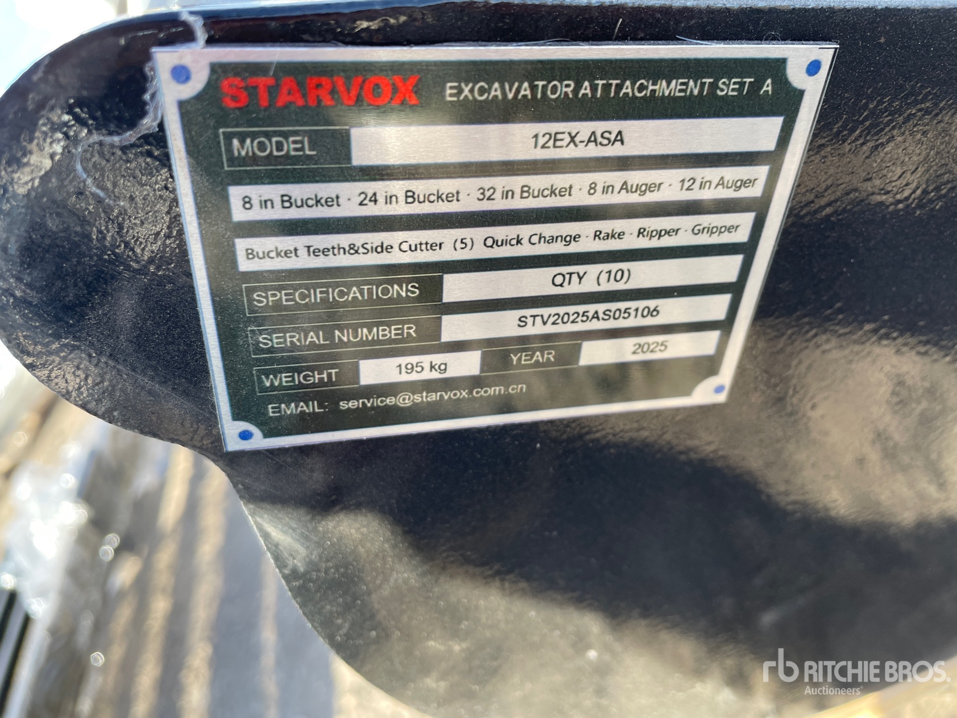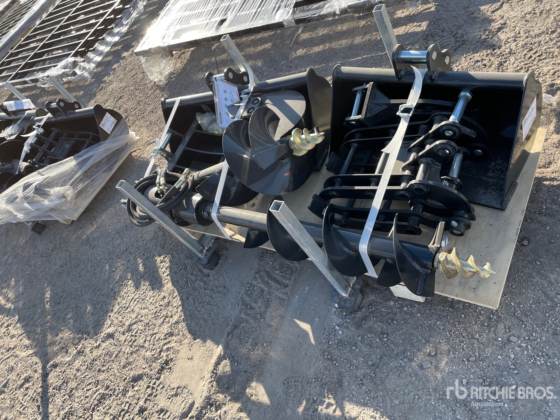 (1) 8 in Bucket, (1) 24 in Bucket, (1) 32 in Bucket, (1) 8 in Auger, (1) 12 in Auger, (1) Quick Coupler, (1) Rake , (1) Ripper, (1) Grapple, (1) Set of Bucket Teeth w/ Side Cutter