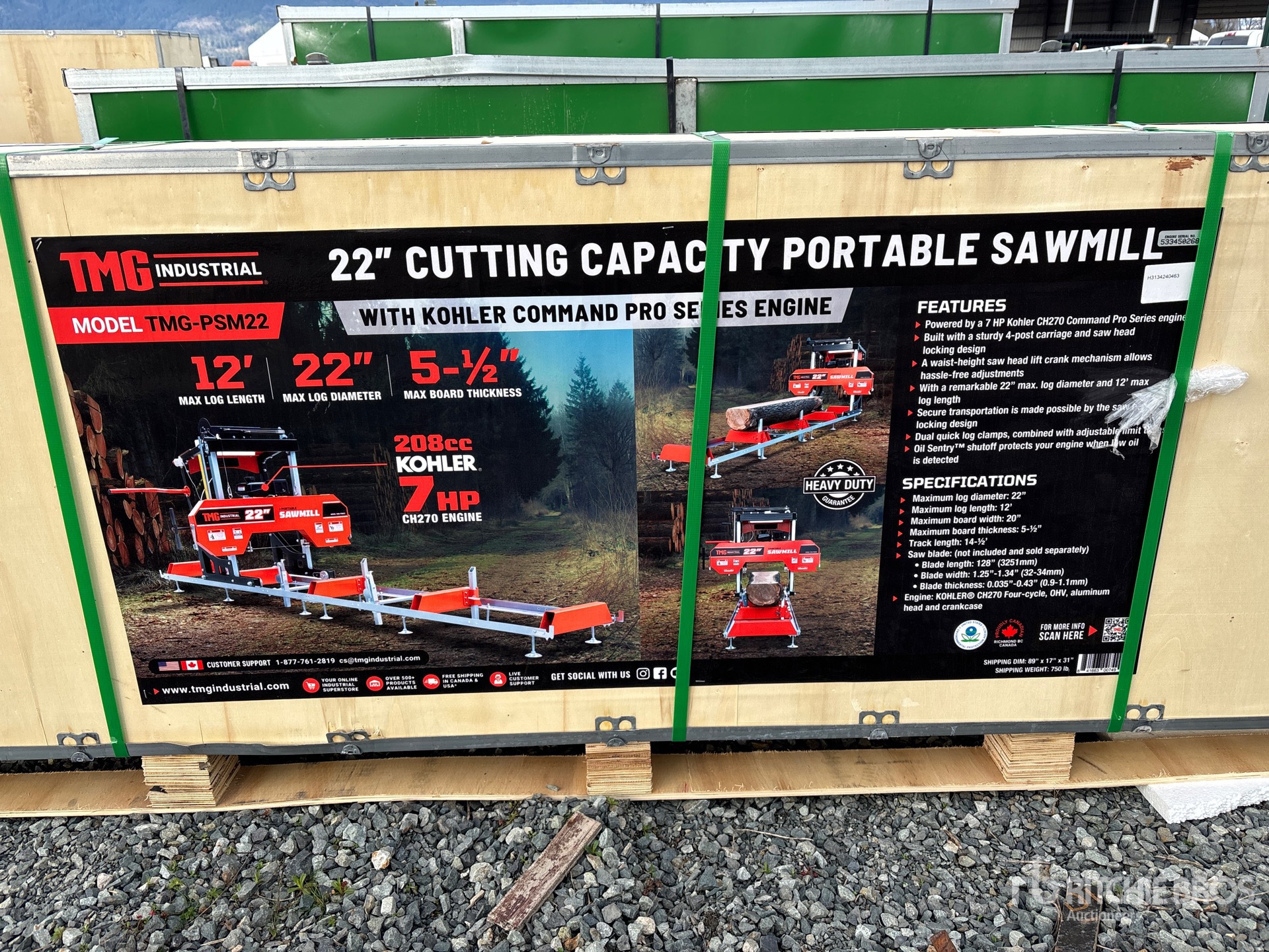 Gasoline Powered, 22 in Max Log Diameter, 12 ft Max Log Length, 20 in Board Width