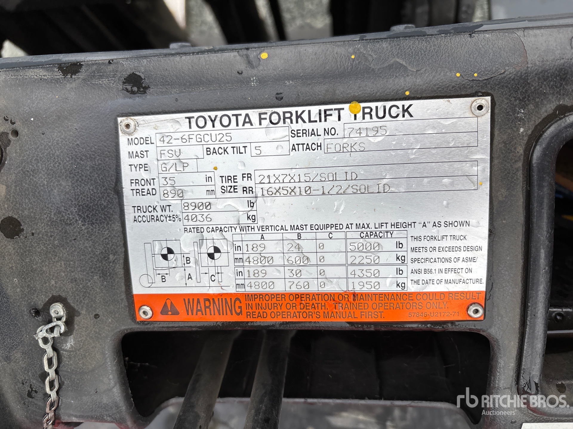 機械の詳細情報は範囲に制限があり、Ritchie Bros. Auctioneersは、ここに明記するもの以外の設備やコンポーメントの検査は行っていません。特に明記されていない限り、明示的または黙示的かにかかわらず、Ritchie Bros.は機械やそのコンポーネントに関する一切の責任を負わないものとします。機能性、快適性、あるいは関係官庁や規制機関が定める安全基準や要件に関する準拠性、特定目的への適合性、または商品性に関する表明や保証も含まれますが、これらに限るわけではありません。お客様には入札される前に必ず機械の検品を行うことをお勧めします。